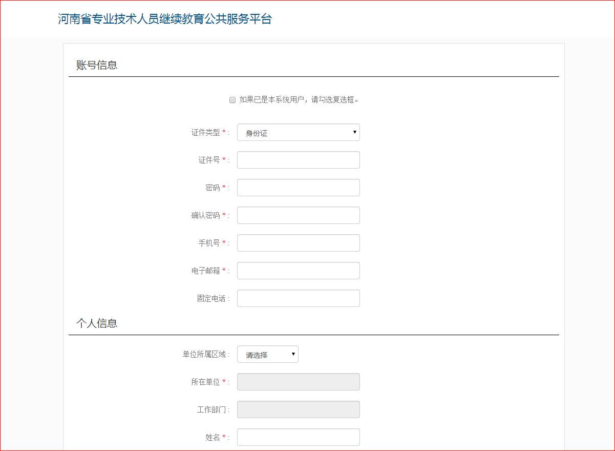 特别说明:继续教育学习必须在河南省专业技术人员公共服务平台进行专业技术人员注册,否则无法对接学时,请及时注册。